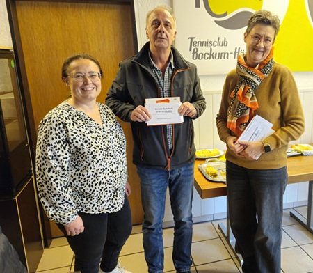 02.04.2026 - von Hendrik Lange - Bei der Jahreshauptversammlung des TC Bockum-Hövel konnte Vereinspräsidentin Merle Rogge 27 Mitglieder begrüßen. Rogge berichtete zunächst von den Ereignissen der vergangenen Saison und von den Zielen des Vereins für 2026 und die nähere Zukunft. Ein zentrales Ziel des Vereins bleibt weiterhin die Steigerung der Mitgliederzahl. Wichtig sei insbesondere die Integration neuer Mitglieder in Trainingsgruppen und Mannschaften. Rogge betonte zudem die Bedeutung gemeinsamer Veranstaltungen wie der Saisoneröffnung für das Vereinsleben. Ein besonderes Dankeschön richtete Rogge an Theresia und Norbert Lahr, die sechs Jahre lang das Clubhaus bewirtet hatten. Nachfolgerin hinter dem Tresen wird Ute Dorstmann, der Rogge gutes Gelingen und vor allem viel Spaß bei ihren gastronomischen Aufgaben im Verein wünschte.