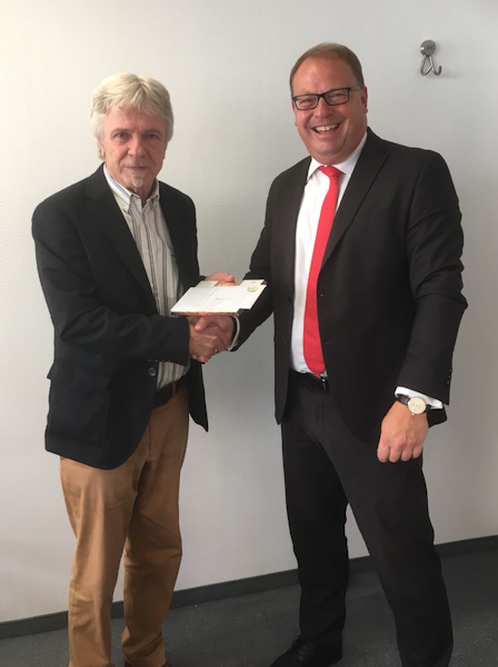 18.06.2018 - Wir gratulieren sehr herzlich einem weiteren Jubilar: Manfred Ide ist seit nunmehr 25 Jahren im Verein und durfte heute das Dankeschön unseres Vizepräsidenten Klaus Roloff entgegennehmen. Dem schließen wir uns natürlich gerne an!